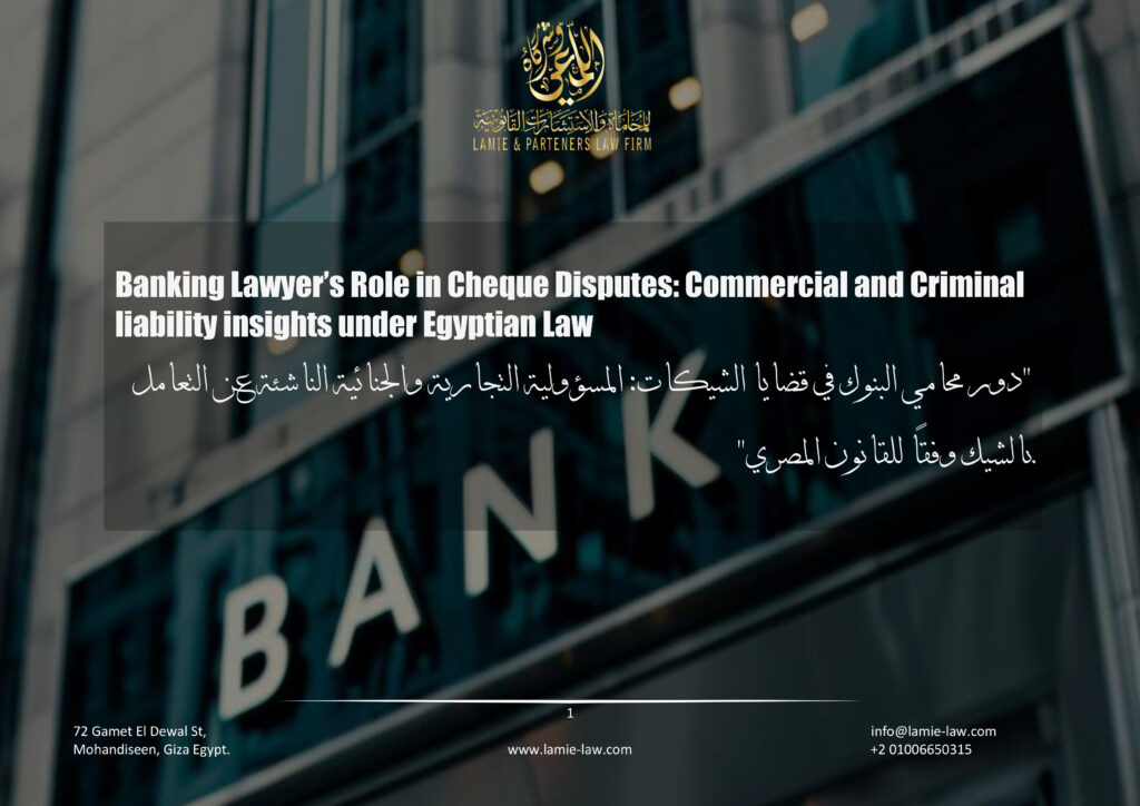 If your company is facing cheque disputes or requires preventive legal advice, contact our experienced Banking & Finance Lawyers at Lamie Law Firm. Expert Banking & Finance, Corporate Lawyers In Cairo, Giza, Egypt.